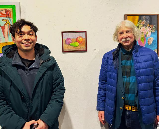 With my son at the Opening of the 85th Annual Members' Exhibit at the Cheltenham Art Center next to my pastel & color pencil drawing